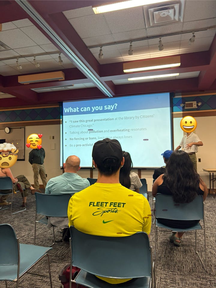 So, you can imagine how pumped I was last year when Citizens’ Climate Chicago started to team up with CPL to do community presentations. After a successful pilot program, this summer, we’re doing a whopping 6 presentations across the city on some our key focus areas: Interacting with Your Elected Officials, Living Sustainably, and (the admittedly-click-bait-y) Has Climate Change Doomed Us?