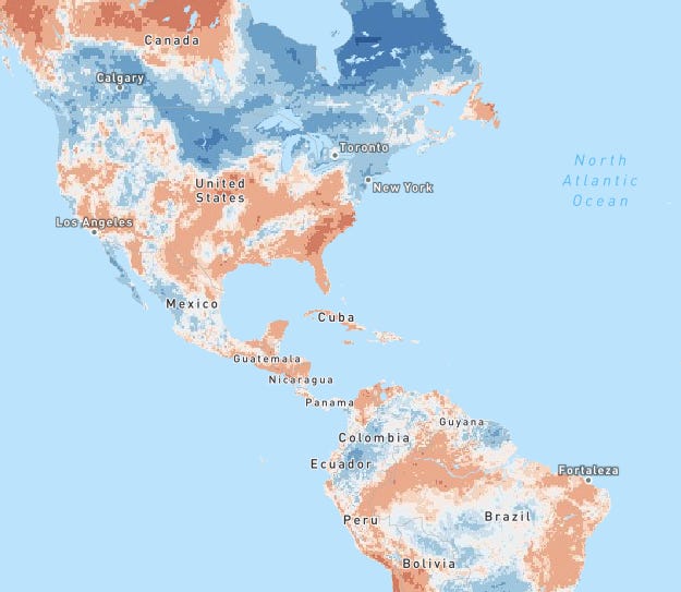 Here’s the best news of all: Even as US policy takes a sharp turn, YOU can keep fighting the fight – as I endlessly bore you with in this particular newsletter. You can electrify your life: EVs, heat pumps, and stoves. You can eat less beef, compost, and sign up for community solar. You can lobby your leaders to bring back the clean energy investments that just got wiped out by the Big (not-so) Beautiful Bill. I’m even heading to Washington DC this week to do so (and will report back post-haste!). And, more than anything, you can talk about climate. As these maps below from Yale Climate Opinions show, while most people believe in climate change now (orange map), almost no one talks about it regularly (blue map).